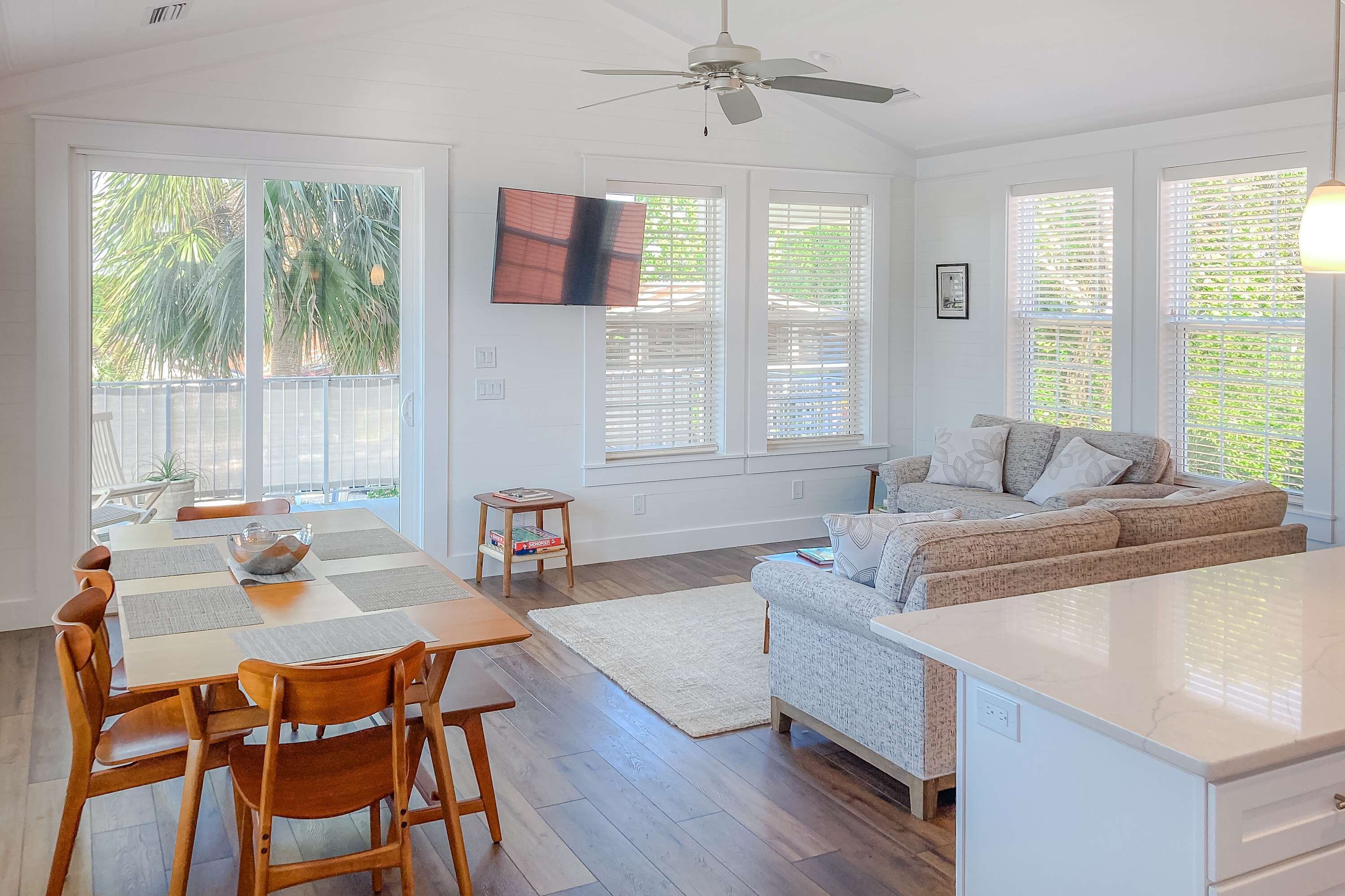 Experience Water Street Hotel and Marina from the third floor of this beautiful 2BR/2BA condo, where scenic views await. Enjoy breakfast on the screened patio as shrimp boats glide by or explore nearby restaurants and shops within walking distance. The master bedroom features a king-size bed with private bath, while the guest room offers a single bed with its own private bath.