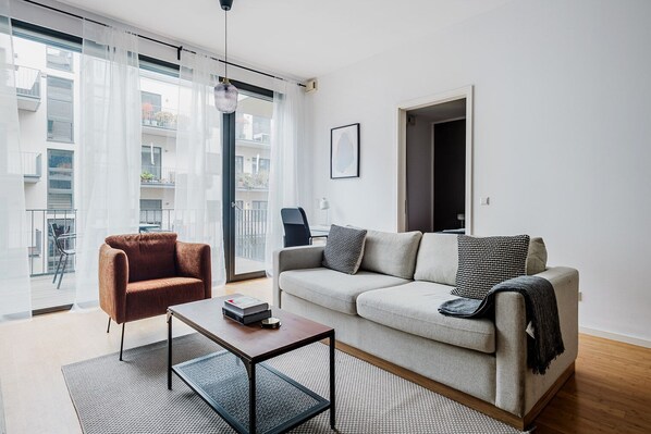 Close to Uber Arena, Blueground | Mitte, furnished & ready provides amenities like laundry facilities. Guests can connect to in-room WiFi.