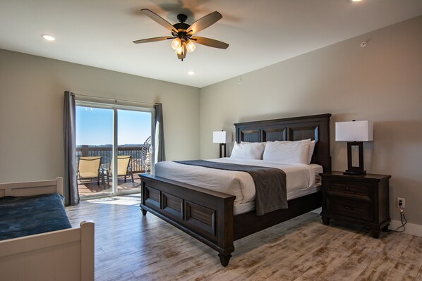 Bedroom #3 has a king bed, a day bed, nightstands, TV, and bathroom.