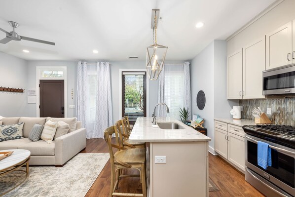 In the heart of Charleston, Azaleas on Spring - Suite A offers a charming retreat. With 3 master bedrooms and private bathrooms, unwind in style or enjoy local coffee on your own private porch overlooking historic Spring Street. Take advantage of 4K Smart TVs with streaming included, Ultra High Speed Internet and an updated kitchen with stainless steel appliances.