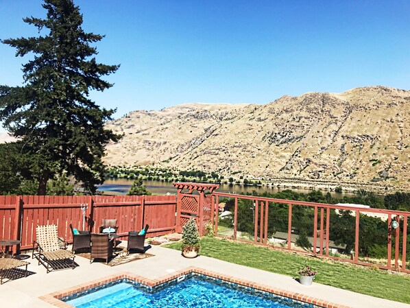 Both the pool and hot tub offer stunning views of the mountain terrain and Columbia River.