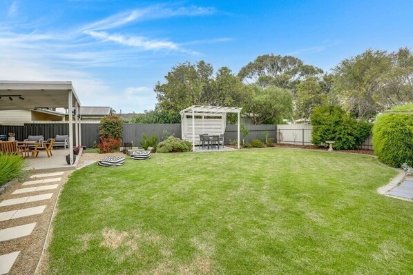 Enjoy a BBQ under the covered pergola or play a game of cricket on the lawn in the fenced back yard.