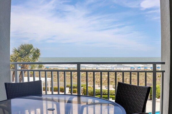 Titre : 3202 SeaCrest- Oceanfront Direct & entièrement rénové. – Avis, offres et photos 2026 | Expedia.ca [Afficher tous les hébergements](http://www.expedia.ca/Hotel-Search?regionId=&selected=21713488&adults=2&children=&sort=RECOMMENDED&useRewards=false&semdtl=&userIntent=&vip=false) Condo entier # 3202 SeaCrest- Direct Oceanfront & Fully Renovated, Heated Pool March/April Au bord de la plage avec piscines intérieures ## Galerie de photos de l’hébergement 3202 SeaCrest- Direct Oceanfront & Fully Renovated, Heated Pool March/April ![Restauration en plein air](https://images.trvl-media.com/lodging/22000000/21720000/21713500/21713488/554f321e.jpg?impolicy=resizecrop&rw=598&ra=fit) ![Téléviseur connecté, lecteur de DVD](https://images.trvl-media.com/lodging/22000000/21720000/21713500/21713488/072b2a5c.jpg?impolicy=resizecrop&rw=297&ra=fit) ![Piscine intérieure, piscine chauffée](https://images.trvl-media.com/lodging/22000000/21720000/21713500/21713488/1967dd0d.jpg?impolicy=resizecrop&rw=297&ra=fit) ![Téléviseur connecté, lecteur de DVD](https://images.trvl-media.com/lodging/22000000/21720000/21713500/21713488/w2006h1327x6y8-021d2381.jpg?impolicy=resizecrop&rw=297&ra=fit) ![Restauration en plein air](https://images.trvl-media.com/lodging/22000000/21720000/21713500/21713488/9ebf17c4.jpg?impolicy=resizecrop&rw=297&ra=fit) - Aperçu - Emplacement - Commodités - Politiques ## Avis 9,8 Exceptionnel ### Condo entier 2 chambres2 salles de bain8 personnes1500 pi² ## Commodités populaires - Vue sur l’océan - Piscine - Baignoire à remous - Cuisine - Laveuse - Sécheuse ## Ajoutez des dates pour connaître les prix Arrivée Départ Voyageurs ## À propos de cet hébergement ### Hébergement entier Vous aurez le condo entier pour vous et ne le partagerez qu’avec d’autres voyageurs de votre groupe. ### 3202 SeaCrest- Direct Oceanfront & Fully Renovated, Heated Pool March/April SEACREST PROJECT UPDATE AS OF 1/14/2026: Elevator 3 is being modernized and will be out of service for the month of February. There is a stairwell next to this elevator for guest's use or guests can use the elevators located at building 1 to access buildings 2 and 3\. \*\*Roof Construction Project (Timeline subject to change): • Scaffolding (Building 1, Street side only) • Noise during work hours • Limited parking due to equipment • Balconies & amenities remain open • Work is expected to be completed by early spring 2026 Tip: The first digit of your villa number corresponds to your building. This wonderful 2-bedroom, 2-bath oceanfront villa is located on the second floor of Building Three at the SeaCrest Resort, offering the perfect blend of relaxation and luxury. Enjoy the refreshing ocean breeze from two private balconies, each providing incredible views of the Atlantic Ocean. Inside, the villa boasts a beautifully renovated kitchen with stainless steel appliances, quartz countertops, and a stylish backsplash. Both bathrooms have been updated with matching quartz countertops, while the villa also features all-new flooring throughout. The spacious king suite includes a full bath, a large walk-in closet, and a private patio where you can sip your morning coffee or watch the sun dip below the horizon over the ocean. The guest room, perfect for family or friends, features two full-size beds, a walk-in closet, and its own full bath. This villa is elegantly furnished and thoughtfully appointed, making it a perfect choice for your next Hilton Head vacation. In addition to the bed and bath linen setup, The Vacation Company provides beach towels for your convenience—one less thing you need to pack! Located in the heart of the Coligny Beach area, SeaCrest Resort is just minutes from Coligny Beach Park, which offers water fountains for children to play in, restrooms, and oceanside swings. Directly across the street, you'll find Coligny Plaza, a must-visit destination with over 60 shops, restaurants, a movie theater, and seasonal family entertainment. A short 3-minute bike ride takes you to Lowcountry Celebration Park, where you can enjoy recreational activities, playgrounds, a ship-shaped play area, and scenic views. \*\*\*Book your stay now for an unforgettable Hilton Head experience at SeaCrest Resort!\*\*\* Town of HHI STR Permit #71038 HIGHLIGHTS • Oceanfront Resort • Ocean View • Free Wireless Internet • 3 TVs • Keurig Coffee Maker • Snowbird's welcome • Beach Towels Included ONSITE AMENITIES • 2 Outdoor Pools (1 Pool Heated in March & April) \*Dates Subject to Change • Outdoor Hot Tub • Outdoor poolside bar (open seasonally) • Indoor resistance pool • Indoor heated spa • Fitness Center • Community elevators located in the parking garage PROPERTY CONFIGURATION • 2 Bedrooms • 2 Bathrooms • Sleeps 8 • Washer/ Dryer • Fully Equipped Kitchen BEDDING BREAKDOWN • Bedroom 1 - 1 King • Bedroom 2 - 2 Doubles • Living Room -1 Queen Sofa Sleeper PROPERTY REMINDERS • Pets are not allowed. • Parking passes will be on the kitchen counter upon your arrival and should be displayed at all times. Parking is limited to 2 passes per villa. • The Vacation Company's Guest Connect will contain all your check-in information (lock codes, Wi-Fi codes, and other information pertinent to your stay). ## Commodités de l’hébergement ### Plage - Sur la plage - Serviettes de plage ### Piscine/spa - Baignoire à remous - Piscine chauffée - Piscine commune - Piscine intérieure ### Internet - Disponible dans le condo : Wi-Fi gratuit ### Stationnement et transport - Options de stationnement sur place incluant un garage ### Cuisine - Batterie de cuisine, vaisselle et couverts - Cafetière-théière - Four - Four à micro-ondes - Grille-pain - Lave-vaisselle - Machine à glaçons - Réfrigérateur - Surface de cuisson ### Restauration - Table de salle à manger ### Chambres - 2 chambres - Canapé-lit - Draps fournis ### Salle de bain - 2 salles de bain - Baignoire - Douche - S