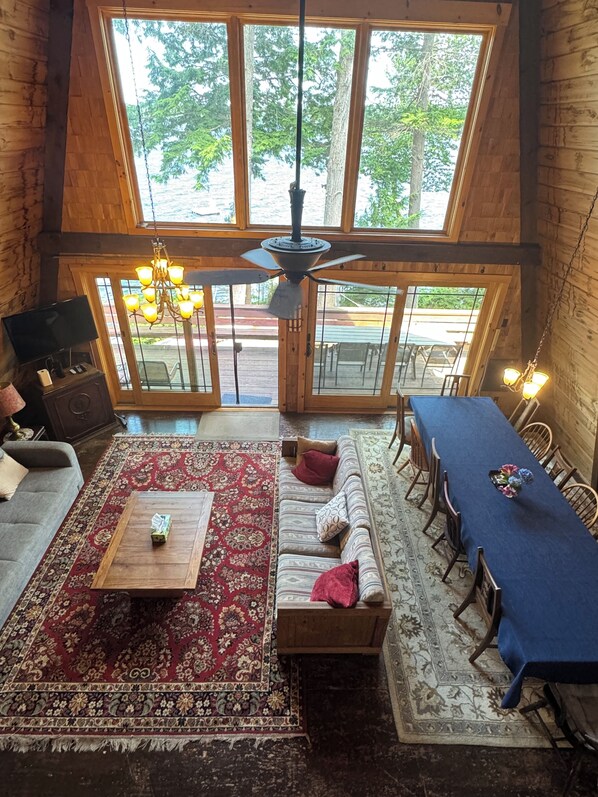 The finished walk-out-to-the-lake lower level has fantastic views from the dual 9-foot sliders and hosts two additional bedrooms with queen beds, a modern bathroom with a 6 foot soaking tub with dual showers and granite countertop, and a bonus family room for the kids to have their own space. The house offers privacy for 10 in bedrooms, plus a loft with a double bed and a queen-size futon in the lower level.