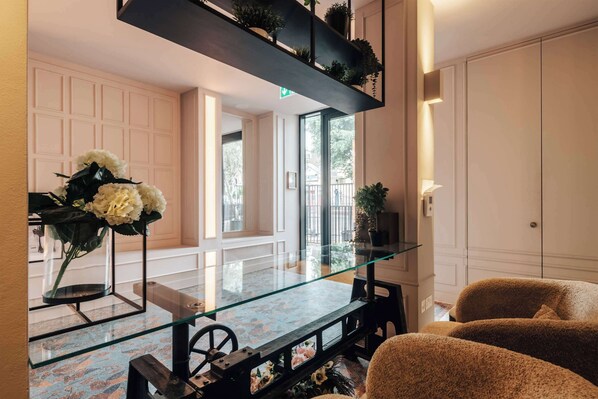 Located on the lower ground floor of Bakery House, this cleverly designed studio offers the same comfort and functionality as our upper units, with a quieter, cozy atmosphere ideal for longer stays or deep rest.