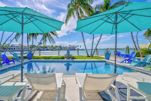 Waterfront vacation home with private pool and kitchen