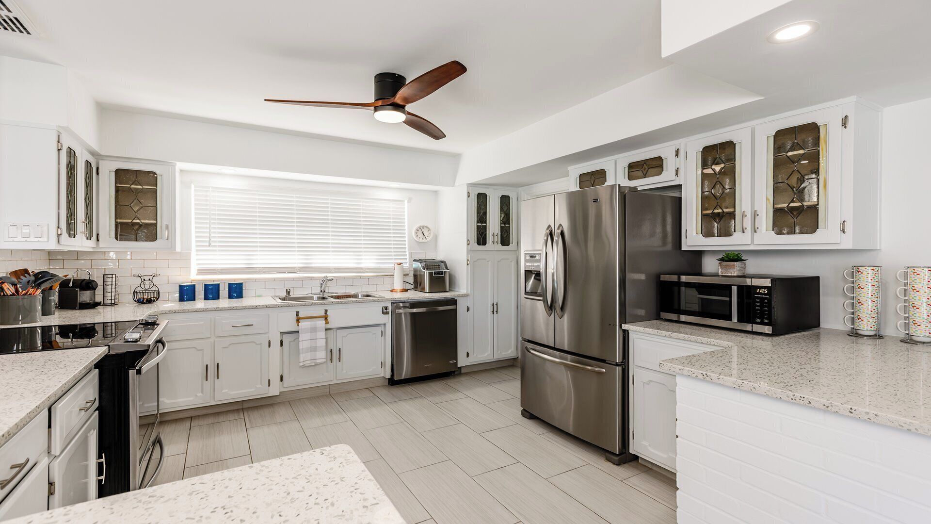 The home has a comfortable contemporary coastal vibe. The kitchen features all new stainless-steel
