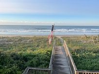 The beautiful and yet practical outside area offers just as much comfort with a hot and cold outdoor shower great for everyone rinsing off the sand and ocean water, especially for little ones and pets. The open and covered decks with rockers and pet/child gate allow you to bask in the sun while sipping an early morning coffee or enjoy meals in the shade, all while listening to the nearby waves and watching the dolphins play. The outdoor area also includes corn hole boards for additional leisure. After watching the magically colorful sunset, everyone can head inside to enjoy the decks of cards, games and puzzles available for family fun!