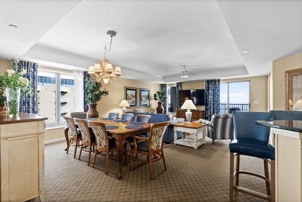 You'll sleep soundly in the King bed and wake up to beautiful sunrise views from primary bedroom. Spend time lounging outside while sipping on something hot or cold; or cook up your favorite foods to entertain your family and friends. Secondary bedroom is 2 Queen bed, so plenty of space for the group. As our guests, you are always invited to use the owners' fenced in private pool area for more secluded relaxation. For an additional fee. This condo can be rented with Unit #1201H to make a larger 3 BR/3 BA combined space for extended family and friends.