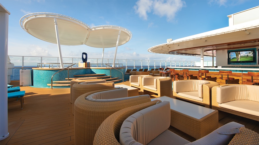There are over 20 complimentary and specialty dining options available on board, ranging from casual to fine dining. Enjoy the complimentary main dining options like the Garden Café buffet, and the Savor and Taste dining rooms. For seafood, check out Bayamo by Ocean Blue, which has a chic dining room inside, as well as an al fresco section where you can dine and enjoy fresh food while taking in views of the sea. Cagney's Steakhouse is the place to find American-style premium cuts as well as homemade jumbo crab cakes and their famous truffle fries. Don't forget to grab a Cheeseburger in Paradise at Jimmy Buffet's Margaritaville at Sea, or if you're in the mood to dine in the comfort of your stateroom, 24-hour room service is always available.