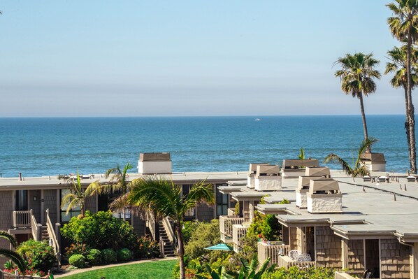 The complex consists of nine four-story buildings surrounded by two-story cottages, on several acres of lushly landscaped tropical grounds. Enjoy a romantic walk on one of the most beautiful stretches of beach in Southern California.