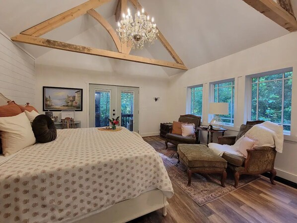 Located in a serene setting, The Greystone Cottage offers an enchanting retreat with a hammock and fire pit. Relax by the luxurious claw-foot tub or relish morning coffee on the porch.