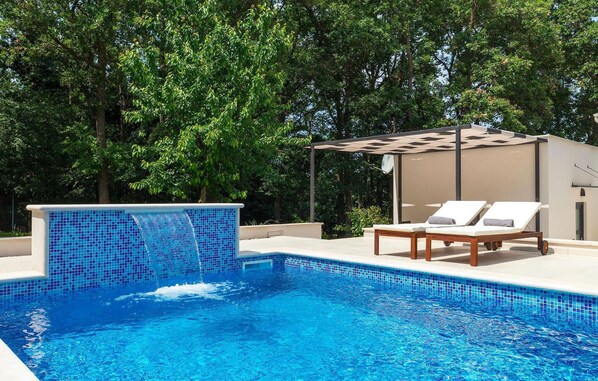 A beautiful fenced garden surrounds the house and the inviting private pool with plenty of natural shade. There you can enjoy the wonderful climate while watching the little ones play in their own playground.Pula is the tourist centre of Istria, culturally and traditionally, but also because of its beautiful natural landscape. The city experienced its heyday in the Roman era, which left numerous traces, in particular the famous amphitheatre. In Venetian times, Pula developed into the control centre of the Adriatic and over the centuries the port became the most important in the region. Pula offers all kinds of leisure activities such as sports facilities, nightclubs, casinos, pubs and restaurants, as well as organised tours. The town has two passenger harbours, both of great importance for cruise tourism. Today, Pula is a holiday resort for relaxing on the beautiful coast and crystal clear sea, steeped in legends and history. Unspoilt forests, beautiful beaches and the Mediterranean climate turn this place into an attraction for beach holidaymakers. You can enjoy the unique nature everywhere. The breathtakingly beautiful nature reserve of Cape Kamenjak and the well-known Brijuni Islands with their unique flora and fauna create an exotic oasis in the northern Mediterranean region.