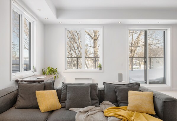 Feel home at this new condo located in beautiful Île d'Orléans. The place is perfect for a relaxing retreat or as a base for remote work.