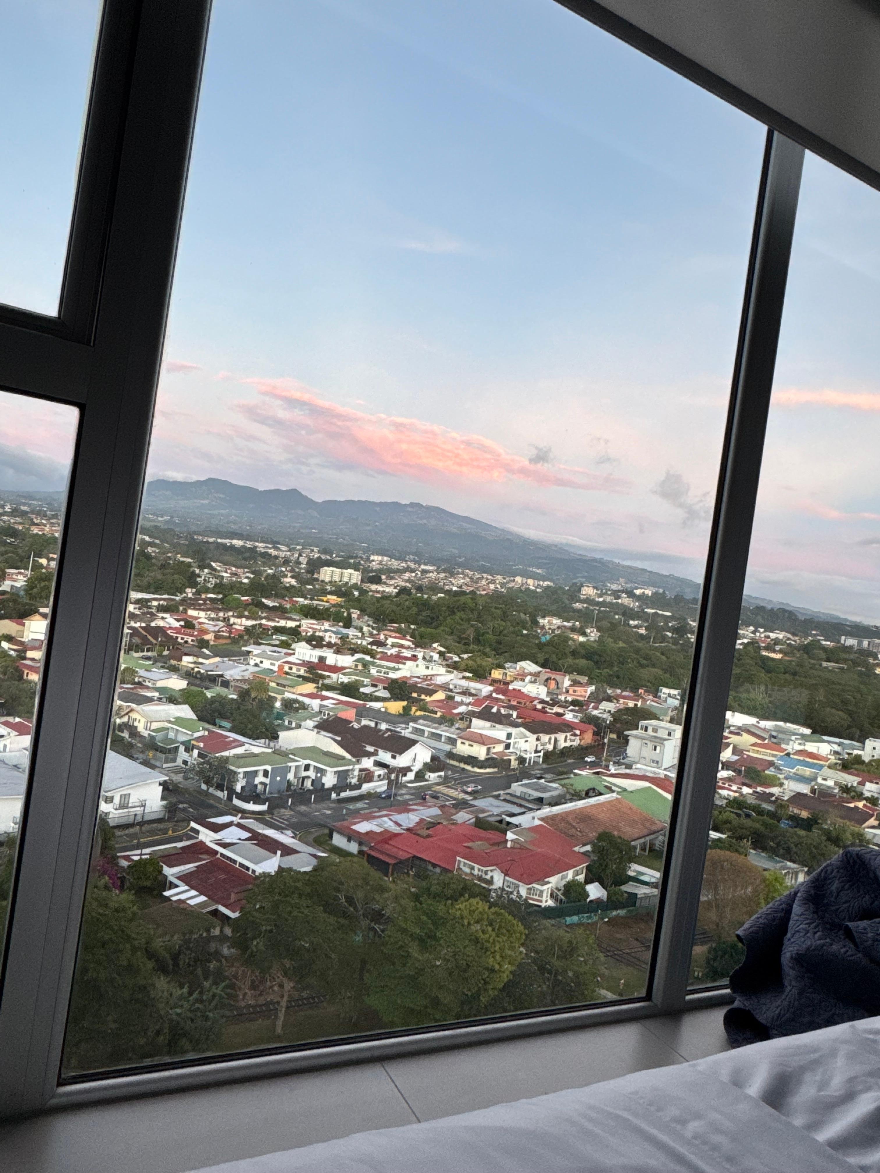 Pros:Overall for the price it’s a nice spot. I love the location in Curridabat. Great restaurants, shopping is close and the Multi Plaza is very walkable. Security and workers are very friendly. Others that stay or live there are also friendly. The views are spectacles and face toward Heredia and the volcano. Really beautiful views from bed (very sparkly very twinkly) outstanding Italian restaurant across the street called Sapore! Cons:They have a teeny tiny sized ant problem. They didn’t come out all the time but they were everywhere when the were. When I saw them in the bed I bought some Lysol and that seemed to do the trick. I did mention this to the managers attention and was to see to it. The other main drawback is the noise trade off! This unit faces the train. It is like an obnoxious rooster! The horn blasts starts around 6am and ends around 7/8pm. This is mainly taking students from the outskirts to all the various universities in town. If you are on the other side of the building you have the instant noise of Ruta 2 that is never quiet (even at very high floors)