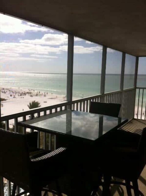 Our condo is on the corner of the building with a view down the South end of the beach. It's as close as you can get to the Gulf without being in the water! We also have a heated pool & covered parking.