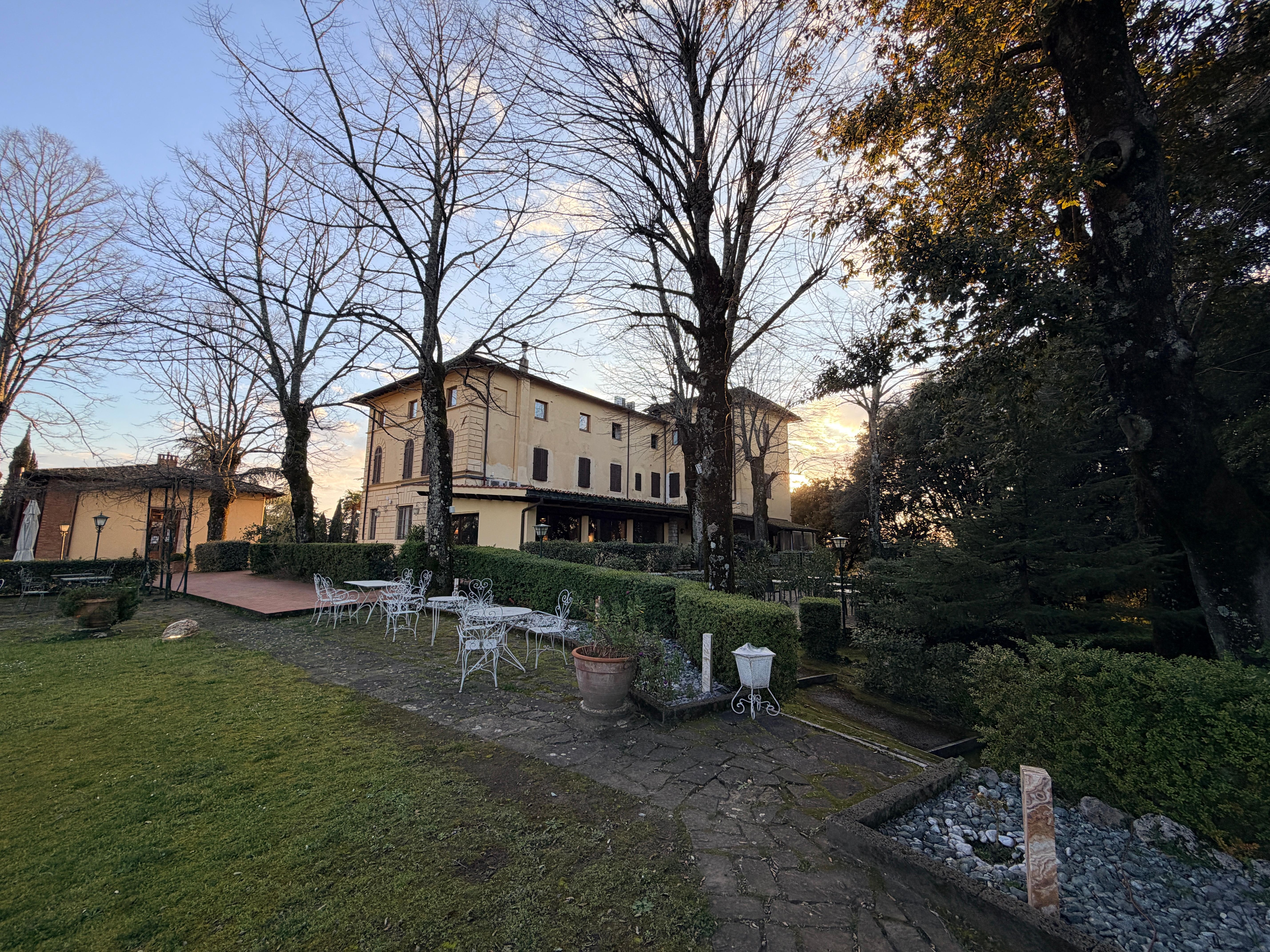 It really is an extraordinary place. Amazing building, high ceilings. Elegant, top service. My wife loved it and we rather thought it was worth the money in spite of a couple minor points. The bath/shower knob did not engage fully to shower mode, so the water ran heavy through the tub spout during showers. But the pressure was still good at the shower. This was complicated by slow drains (both in the shower and also the sink). We stayed 3 nights but no repair was forthcoming (hard to get a plumber I guess). The shower was in the tub which is a tight squeeze. These places use an old dungeon key for room entry...no security risk I think, but it would be nice to upgrade to electronic card access? We booked understanding that there was air conditioning but there was none, or not functioning...consulted staff. The weather was temperate so not a problem but, travelling through Italy can be sticky and we like to dry out at the end of the day. Even with all this, the place is extraordinary and it was a fine place for the money. Also I wanted to get some laundry done as we travelled for weeks, but thee seemed no way to get it done. The pool is nice but in this season alot of flies were in the pool. The staff and service and food are top notch. The place is on a road that has the usual Italian motorbikes zipping up the road. But at night it is quiet. Beautiful property gardens. There was no shuttle to town, but the buses stop right at the property. We drove.