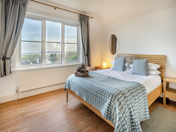 Savour watching the sunset over the sea from your patio whilst dining al fresco, the perfect spot for your family and friends alike to enjoy. This large property offers lots of space throughout and has been lovingly furnished and decorated for your holiday. The kitchen is perfect for preparing that special meal and leads through to the formal dining room with magnificent sea views; the living room also boasts sea views and has patio doors that lead out to your private patio and enclosed lawned garden. Here you will find plenty of space for your children to let off some steam. All four bedrooms on the first floor offer a good level of comfort and space with both king bedrooms enjoying those magnificent sea views.