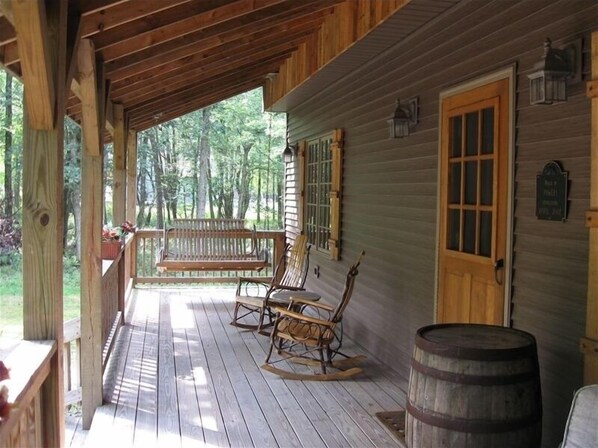 Welcome to the Tree House. Our home was designed and custom built in 2002 and has a large, wrap-around porch, spacious bedrooms and bathrooms, and a large fireplace that is the focal point of the living space. The Timber Frame Construction with Red and White Oak interior walls gives the home both a rustic and cozy feeling, while still having the space and convenience of modern comforts and amenities. The home is decorated with antique farming tools and warm room colors throughout, giving it the feel of a true mountain get-away. If you want a cozy mountain feeling, this is the home for your vacation.