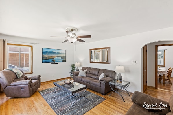 King Bed with fenced in backyard & Large 65" TV