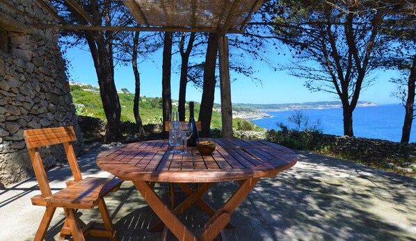 A magnificent area of 2.5 acres of pine trees with direct access to the sea, this romantic trullo, ideal for two or three people, offers spectacular views of the rocky cliffs of Castro and the Palombara cove. Immerse yourself in a corner of paradise where you can smell the fragrance of the Mediterranean and listen to seagulls and cicadas interrupted only by the sound of the waves.