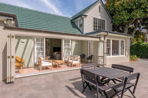 This beautiful character home is a secluded sanctuary within an easy stroll to Hagley Park North. The spacious living area features a decorative fireplace, with wall panel heating making the whole house cosy and comfortable. Doors open straight from the living area to the elevated, covered conservatory which leads down to the garden; blending the cosy with perfect outdoor living.