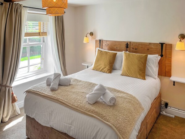 On the ground floor, you will find a living room and fully equipped kitchen, ideal for preparing delicious meals during your stay. Upstairs, the spacious bedroom boasts a kingsize bed, ensuring a restful night’s sleep. The well-appointed bathroom features a large rainfall shower cubicle and a heated towel rail, adding a touch of indulgence. To the rear of the cottage, a small patio area provides the perfect spot to enjoy your morning coffee or evening barbecue before heading out to explore the town.