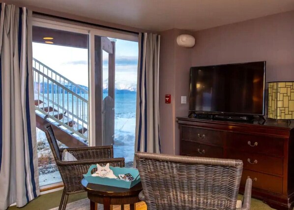 After a day filled with exploration and discovery, unwind in our cozy studio space designed with your comfort in mind. Featuring 2 beds and 1 bathroom, in a studio space, the sleeping arrangements include two luxurious queen beds adorned with premium linens and cozy blankets. Wake up rejuvenated and ready for another day of adventures in the Alaskan wilderness.