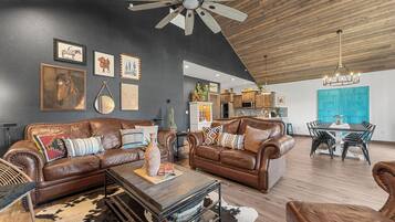 Charming 6 bdrm cabin w/ en-suite baths, hot tub, fireplaces, & in/outdoor pools