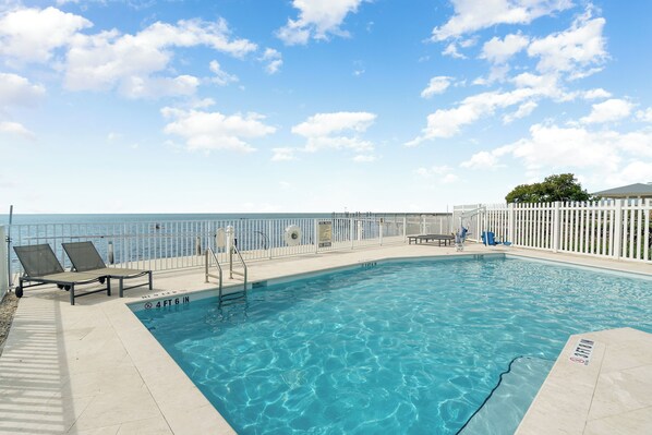 ✔ Enjoy the community’s heated oceanfront pool with lounge chairs and a sun shelf