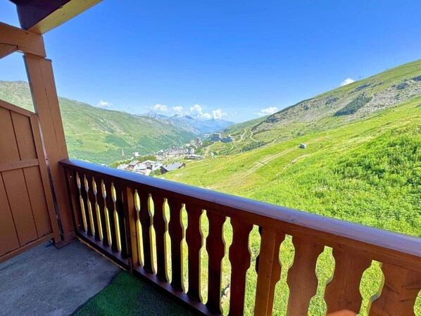 10m from ski slopes, 7th floor, view mountain, balcony, tv, ski locker, 22m², Les Menuires