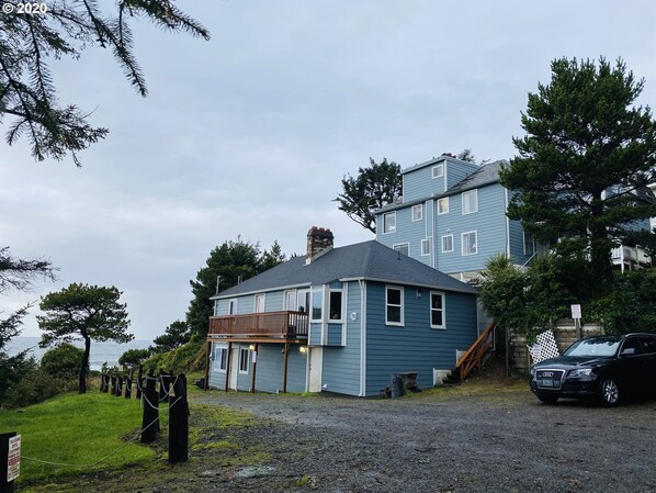 UPDATED WITH NEW HARD SURFACE FLOORING AND NEWER PLUMBING this spacious 1 bedroom condo style unit is located in a small rustic Boutique Motel nestled in quite residential neighborhood right above Canyon Dr. Ocean front park. It has full kitchen, cozy real wood burning fire place and gorgeous ocean views from living room and shared with one more unit ocean view deck. Free parking. Short walk or drive to the beach and ocean front park. Fishing, surfing, jogging, strolling, biking, bon fires or just walking on one of the nicest beaches of Lincoln City, Oregon is within your grasp. Around 75 ft-100 ft. above sea level, away from busy streets, nestled in quite, residential neighborhood. Short walk to the beach (5-7 min) or very short drive on the same road: free parking and bathrooms at Canyon dr. Ocean Front park. Fly kite, watch whales, collect agates, stroll, bike, jog, walk, make a bonfire.