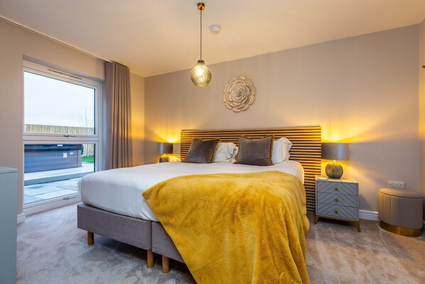 Beyond the comfort of the main open plan living area are five super-king size bedrooms, all of which can be split into two single beds, if you prefer. There are two bedrooms located on the ground floor and three bedrooms on the first floor, each individually styled with their own en-suite facilities and wall mounted TV’s. Other facilities in The Birches include a separate utility room (with a washing machine, drying machine and an additional fridge), and a separate family bathroom with a bath tub.