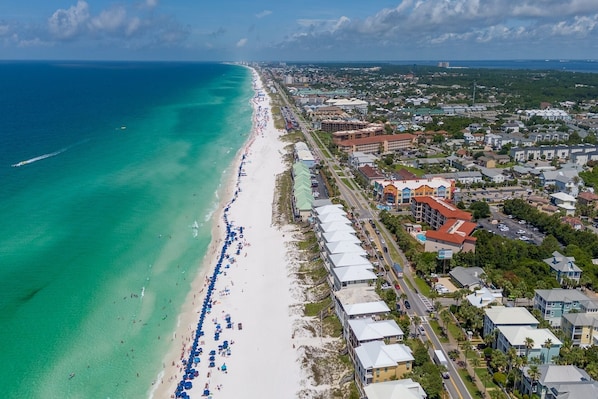 Titre : Seas and Greetings, 2 Community Pools, Dog Friendly, 5 Bed and 4.5 Bath – Avis, offres et photos 2026 | Expedia.ca [Afficher tous les hébergements](http://www.expedia.ca/Hotel-Search?regionId=&selected=96461903&adults=2&children=&sort=RECOMMENDED&useRewards=false&semdtl=&userIntent=&vip=false) Maison entière # Private Beach, Dog Friendly, 2 Community Pools ## Galerie de photos de l’hébergement Private Beach, Dog Friendly, 2 Community Pools ![Plage à proximité](https://images.trvl-media.com/lodging/97000000/96470000/96462000/96461903/97a7ef32.jpg?impolicy=resizecrop&rw=598&ra=fit) ![Extérieur](https://images.trvl-media.com/lodging/97000000/96470000/96462000/96461903/cd1fa0c9.jpg?impolicy=resizecrop&rw=297&ra=fit) ![5 chambres, bureau, fer et planche à repasser, lit de bébé portatif](https://images.trvl-media.com/lodging/97000000/96470000/96462000/96461903/8920a55c.jpg?impolicy=resizecrop&rw=297&ra=fit) ![Réfrigérateur, four à micro-ondes, un four, surface de cuisson](https://images.trvl-media.com/lodging/97000000/96470000/96462000/96461903/671e3504.jpg?impolicy=resizecrop&rw=297&ra=fit) ![Réfrigérateur, four à micro-ondes, un four, surface de cuisson](https://images.trvl-media.com/lodging/97000000/96470000/96462000/96461903/362f5134.jpg?impolicy=resizecrop&rw=297&ra=fit) - Aperçu - Emplacement - Commodités - Politiques ## Avis 9,6 Exceptionnel ### Maison entière 5 chambres5 salles de bain14 personnes2500 pi² ## Commodités populaires - Piscine - Cuisine - Laveuse - Sécheuse - Animaux de compagnie acceptés - Wi-Fi gratuit ## Ajoutez des dates pour connaître les prix Arrivée Départ Voyageurs ## À propos de cet hébergement ### Hébergement entier Vous aurez la maison entière pour vous et ne la partagerez qu’avec d’autres voyageurs de votre groupe. ### Private Beach, Dog Friendly, 2 Community Pools Escape to Seas and Greetings, a 5-bed, 4.5-bath home in Miramar Beach's gated Emerald Waters Village. Perfect for 14 guests, this coastal retreat features 2 community pools, a gourmet kitchen, and is a short 5-minute stroll to private beach access. Enjoy family-friendly amenities in an elegant, comfortable setting, close to shopping and dining. The Space The bright, open-concept main floor is designed for gathering, with comfortable seating in the living room and a dining area for 8, plus 5 more seats at the kitchen breakfast bar. The modern, fully equipped kitchen features two full-size refrigerators, an under-counter ice maker, and a beverage center, making meal prep and entertaining a breeze. Sleeping Arrangements: First Floor King Master Suite: Spacious suite with a sitting area, 55” 4K TV, and a private en-suite bath featuring a double vanity and large walk-in shower. A full-size crib is available in the large closet. Second Floor King Master Suite #1: Complete master suite with a sitting area, 55” 4K TV, and a private en-suite bath. Second Floor King Master Suite #2: A second complete master suite with a sitting area, 55” 4K TV, and a private en-suite bath. Second Floor King Guest Room: Bonus guest room with a 55” 4K TV, en-suite bath, and access to a covered porch. Second Floor Bunk Room: Custom-built room with two twin-over-full bunks (4 beds total) and a 55” TV, perfect for kids or extra guests. Home Highlights: Access to two community swimming pools. Private gas grill and patio furniture. Two laundry rooms (one on each floor). High-speed Wi-Fi and a selection of board games. Family-friendly gear: Full-size crib, Pack 'N Play, baby gates, and an under-counter highchair. Beach essentials: Rolling beach cart, 6 beach chairs, and an umbrella. Guest Access Guests will have private and exclusive access to the entire 5-bedroom home, including all interior spaces, porches, and the outdoor patio with a gas grill. As our guest, you also have full access to the two lushly landscaped community swimming pools within Emerald Waters Village. The private beach access for the community is just a short 1.5-block stroll away. Parking is available for a maximum of 4 vehicles in the driveway. Please note that golf carts count toward this vehicle limit. Extras Grocery Delivery: Don't waste your beach time in the store! We've partnered with Two Chicks & A Cart for optional pre-arrival grocery delivery. Your kitchen will be stocked when you arrive. Starter Supplies: We provide a starter supply of essentials like paper towels, bath tissue, and dish soap to get you through your first night. Guests are responsible for purchasing additional supplies for the remainder of their stay. Booking Details Max occupancy: 14 Minimum age to rent: 25 No student or chaperoned groups. Cancellation Policy: Cancellations received within 60 days of the check-in date will forfeit the full payment. For cancellations made more than 60 days before check-in, a processing fee may apply. Parking: There is space for 4 vehicles. Golf carts count as a vehicle. Dog-friendly (maximum of two dogs) for an additional $150 per dog. ## Commodités de l’hébergement ### Plage - Plage à proximité ### Piscine/spa - Piscine commune ### Internet - Disponible dans la maison : Wi-Fi gratuit ### Stationnement et transport - Stationnement sur place ### Cuisine - Batterie de cuisine, vaisselle et couverts - Cafetière-théière - Four - Four à micro-ondes - Grille-pain - Îlot de cuisine - Lave-vaisselle - Machine à glaçons - Réfrigérateur - Surface de cuisson ### Restauration - Table de salle à manger ### Chambres - 5 chambres - Draps fournis ### Salle de bain - 4,5 salles de bain - Baignoire - Baignoire ou douche - Douche - Séchoir à cheveux - Serviettes fournies ### Lieux de séjour - Salle de séjour - Table de salle à manger ### Divertissement - Téléviseur connecté ### Espaces extérieurs - Balcon - Barbecue ### Buanderie - Installations de buanderie - Laveuse ### Espaces de travail - Bureau - Chaise de bureau ### Confort - Chauffage - Climatisation ### Animaux de compagnie - Animaux d