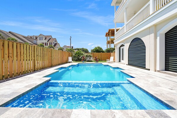Great house for 12 people! Plenty of seating in the living and dining rooms. Kitchen was well equipped. Comfortable beds. Multiple decks for sun and shade. Pool was awesome. Would recommend paying the extra fee for heating in shoulder seasons. Wish there were more loungers in the pool area though. Just a 2 minute walk to the beach out the back gate. Friendly, walkable neighborhood close to restaurants and shopping.