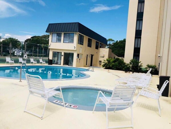 Title: Holiday Towers, beautiful ocean view - Latest Reviews, Deals & Photos 2026 - Expedia.ca [See all properties](http://www.expedia.ca/Hotel-Search?regionId=&selected=101008769&adults=2&children=&sort=RECOMMENDED&useRewards=false&semdtl=&userIntent=&vip=false) Entire apartment # Holiday Towers, beautiful ocean view Apartment with kitchen, steps from Myrtle Beach Beaches ## Photo gallery for Holiday Towers, beautiful ocean view ![Beach - Holiday Towers, beautiful ocean view (Myrtle Beach)](https://images.trvl-media.com/lodging/102000000/101010000/101008800/101008769/6751c02e.jpg?impolicy=resizecrop&rw=598&ra=fit) ![TV - Holiday Towers, beautiful ocean view (Myrtle Beach)](https://images.trvl-media.com/lodging/102000000/101010000/101008800/101008769/97277357.jpg?impolicy=resizecrop&rw=297&ra=fit) ![TV - Holiday Towers, beautiful ocean view (Myrtle Beach)](https://images.trvl-media.com/lodging/102000000/101010000/101008800/101008769/1390b3b4.jpg?impolicy=resizecrop&rw=297&ra=fit) ![2 bedrooms, iron/ironing board, WiFi, bed sheets - Holiday Towers, beautiful ocean view (Myrtle Beach)](https://images.trvl-media.com/lodging/102000000/101010000/101008800/101008769/2a2dae5e.jpg?impolicy=resizecrop&rw=297&ra=fit) ![Pool - Holiday Towers, beautiful ocean view (Myrtle Beach)](https://images.trvl-media.com/lodging/102000000/101010000/101008800/101008769/81e302bf.jpg?impolicy=resizecrop&rw=297&ra=fit) - Overview - Location - Amenities - Policies Holiday Towers offers a charming ocean-view apartment with beach access, outdoor pool, hot tub, tennis and basketball court. Unwind in the fully equipped kitchen or relax on the balcony with beautiful views of Family Kingdom. With 2 bedrooms and free parking available upon arrival. ## Reviews 8.4 Very good ### Entire apartment 2 bedrooms2 bathroomsSleeps 61000 sq ft ## Popular amenities - Pool - Hot tub - Kitchen - Washer - Dryer - Air conditioning ## Add dates for prices Check-in Check-out Travellers ## About this property ### Entire place You'll have the entire apartment to yourself and will only share it with other guests in your party. ### Holiday Towers, beautiful ocean view Summary: Ocean view! Beautiful apartment, Located at Holiday Towers. \+ 9th floor + elevator. \*Great location, beach access \*outdoor pool, hot tub \* tennis/ basketball court \* grilling area \*all that in the center of Myrtle Beach! Located close to Ocean Blvd., close to all main attractions, restaurants and bars! beautiful ocean and Family kingdom view! The Space: \*2 bedrooms, 2 twin beds \* 1 queen bed, 1 sleeper sofa in living room, \*fully equipped kitchen with all basics \*hair dryer and iron for your convenience \*beautiful ocean view from the balcony, it’s a pleasant and cozy place, very comfortable and best spot in the center of MB! Guest Access: \*Pool access with Green pool key only (green pool key must be returned to apartment) \* Free parking with parking pass only (Parking Pass will wait for you in the apartment on the cork board). Only 1 parking spot available. Motorcycles aren’t allowed. \*NO mailbox for this location. Host is not responsible for any mail or packages delivery. \*Washer and dryer available in the apartment. The Neighborhood: Located across the street from the ocean, close to ocean Blvd., close to Family Kingdom and all main attractions. Ocean view from the balcony! Getting Around: You can use a car or taxi or Uber to get around the city. Other Things to Note: \*Only initial amount of toiletries, paper towel and toilet paper provided, guests should bring their own extras. \*NO mailbox for this location. Host is not responsible for any mail or packages delivery. \*Bed sheets are provided (one set per bed) \*Bath towels are included (one per guest, must not leave unit) \*Bring your own beach towels (do not use bath towels) \*condo is inspected prior to your arrival to make sure all is clean and working properly. please contact me immediately for any questions or concerns. Interaction with Guests: Please communicate through the website or app only. Downloading the Airbnb app is recommended for more convenient communication. You can call or text to the private number only in case of any urgency. I drive very hard to keep my place with 5 stars hospitality and would like to know immediately about any issues and to make sure you’ll have the best time and experience! ## Property amenities ### Pool/Spa - Communal pool - Hot tub ### Internet - Available in the apartment: WiFi ### Parking and transportation - Parking on site ### Kitchen - Coffee/tea maker - Cookware, dishware, and utensils - Dishwasher - Microwave - Oven - Refrigerator - Stovetop - Toaster ### Bedrooms - 2 bedrooms - Bedsheets provided - Sofa bed ### Bathroom - 2 bathrooms - Hair dryer - Shower - Towels provided ### Entertainment - TV with cable/satellite channels ### Outdoor areas - Balcony - Barbecue grill ### Laundry - Laundry facilities - Washing machine ### Comfort - Air conditioning - Heating ### Pets - No pets allowed ### Suitability/Accessibility - Elevator - Smoking not allowed ### Services and conveniences - Iron/ironing board ### Location highlights - Near the sea ### Safety features - Carbon monoxide detector (host has indicated there is a carbon monoxide detector on the property) - Smoke detector (host has indicated there is a smoke detector on the property) ### General - Unit size: 1,000 square feet ## Similar properties ![Exterior](https://images.trvl-media.com/lodging/18000000/17710000/17702100/17702043/886737d5.jpg?impolicy=fcrop&w=469&h=201&p=1&q=medium) ### Long Bay Dunes by Elliott Beach Rentals Myrtle Beach - Pool - Kitchen - Dryer - Parking included 8.2 Very good 10 reviews [](https://www.expedia.ca/Hotel-Search?startDate=2026-02-23&endDate=2026-02-24&selected=17702043&PinnedHotelID=17702043&HadPinnedHotel=true®ionId=-1&adults=2) ![Apartment (2 Bedrooms) | Interior](https://images.trvl-media.com/lodging/94000000/93210000/93201300/93201221/1a3112f1.jpg?impolicy=fc