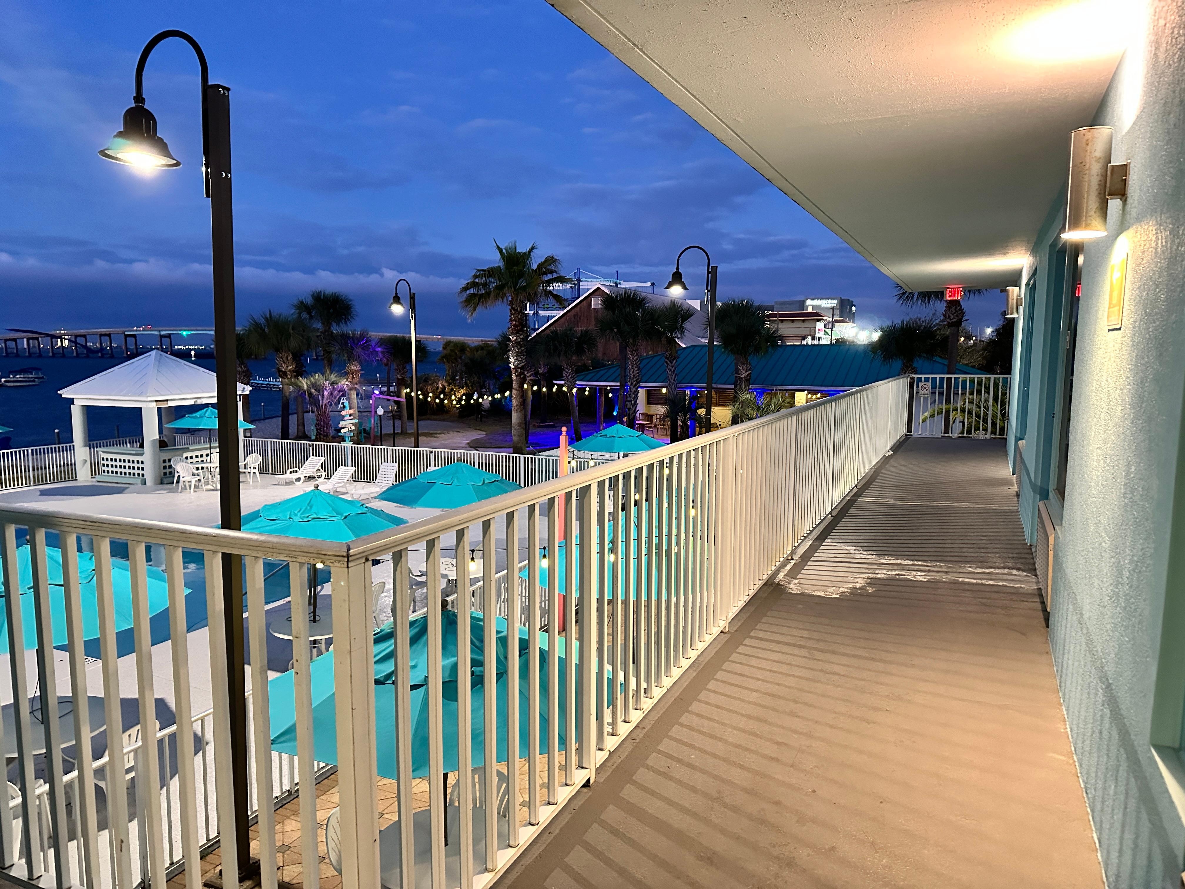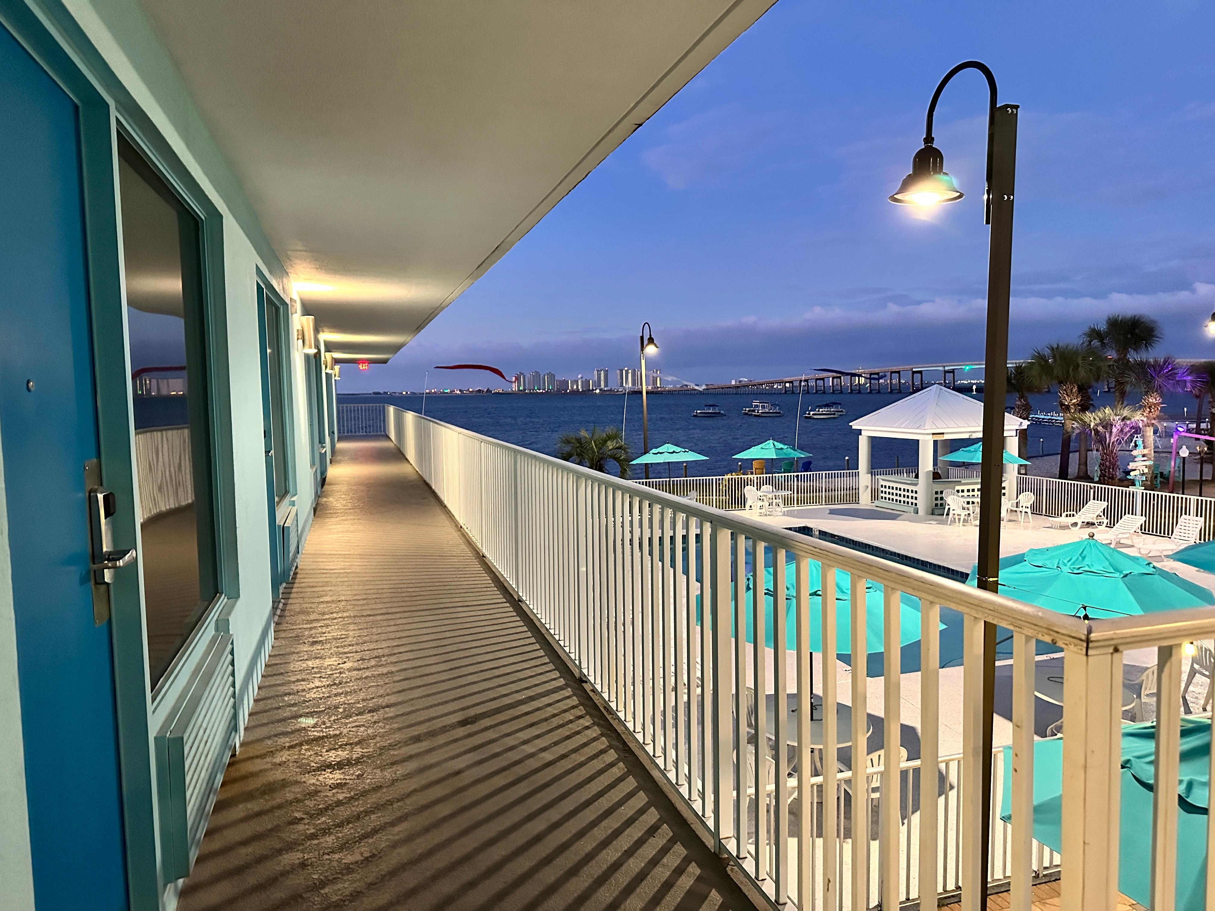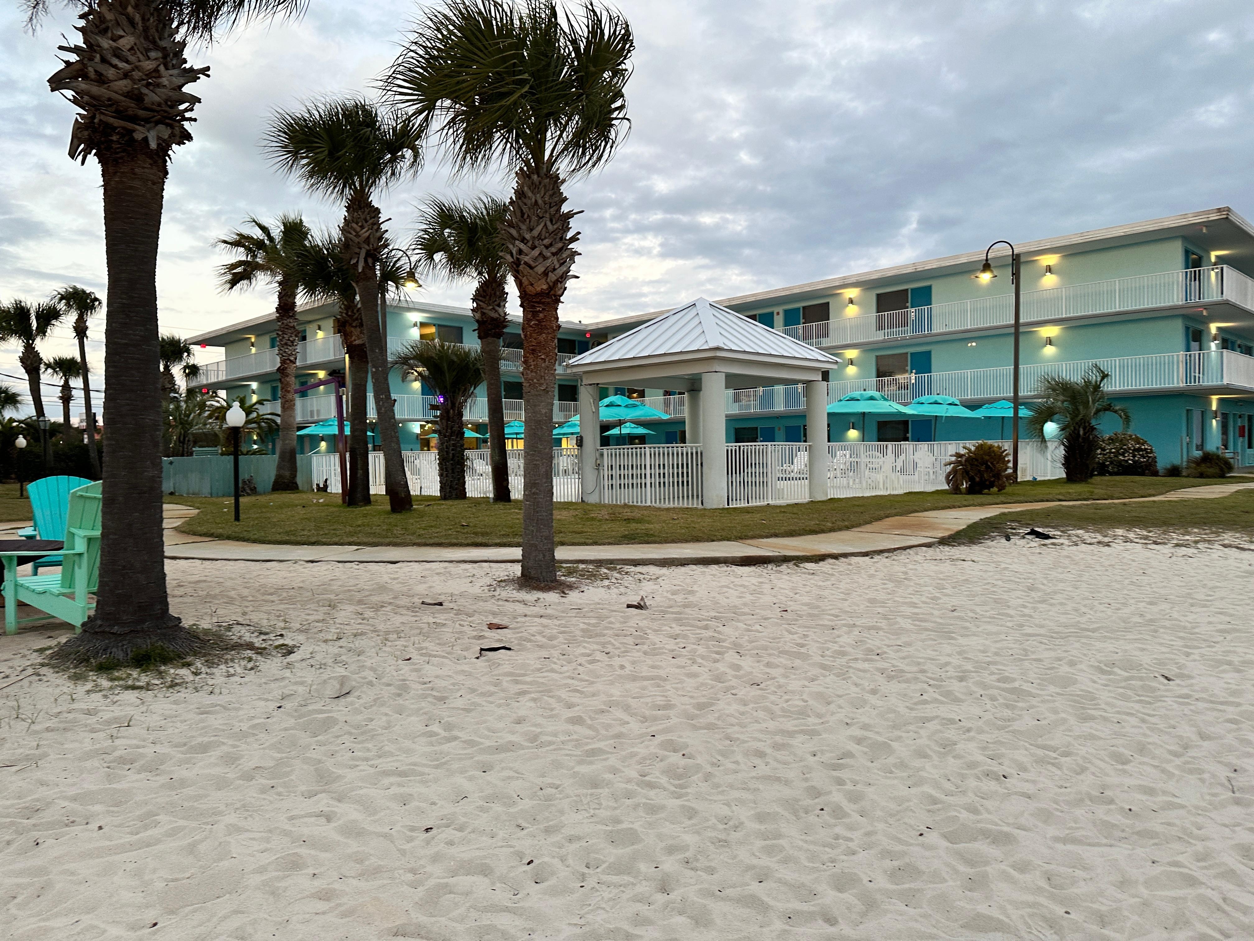This hotel is a hidden gem. We loved the outdoor area with the fire fit and games. The pool was heated and my kids had a blast. A walk in the sand a few feet to Dewy Destins restaurant was great. This hotel has a vintage feel to it and was very clean. The staff is amazing! Everyone from the front desk clerks to the girls cleaning were super nice and accommodating. What a wonderful time we had. The room was very clean. The whole hotel was clean. Anything we needed was taken care of immediately.