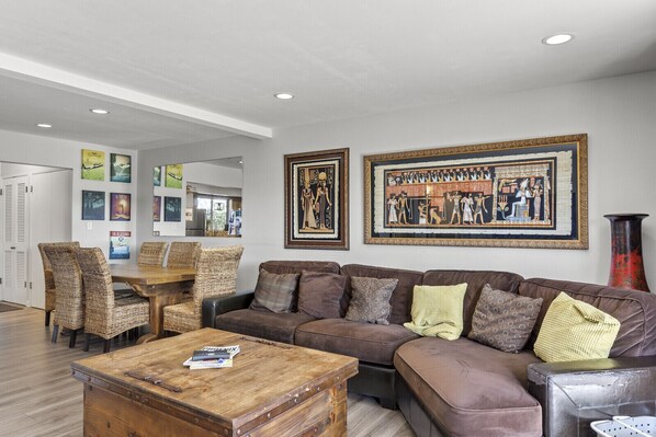 You'll find a comfortable sofa and huge flat screen tv with cable and the ability to stream to services like Netflix and Hulu. This is also a Smart Home, meaning you can control the lighting and temperature by just voicing the command!