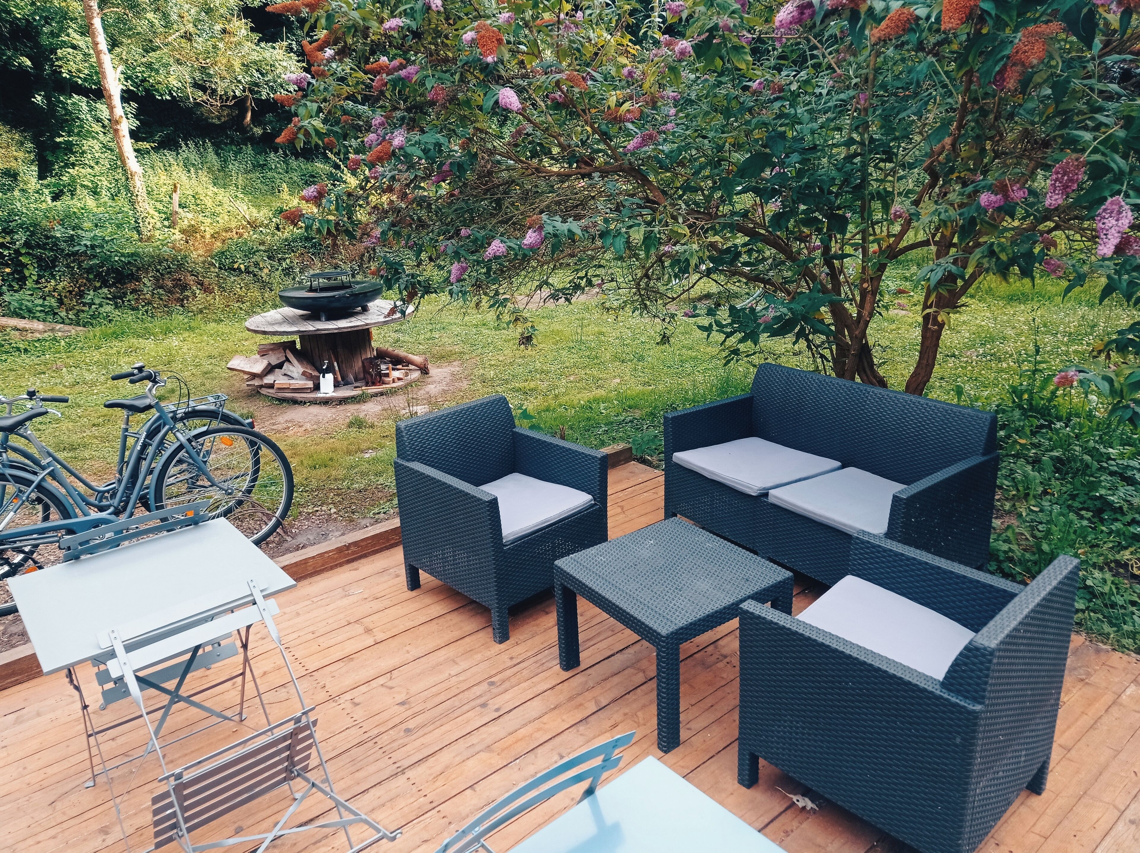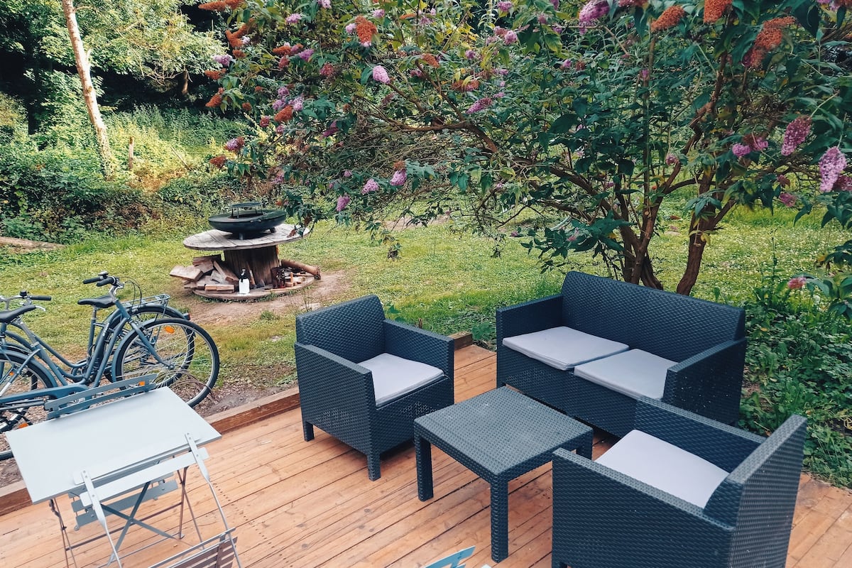 Tente, vue sur le jardin