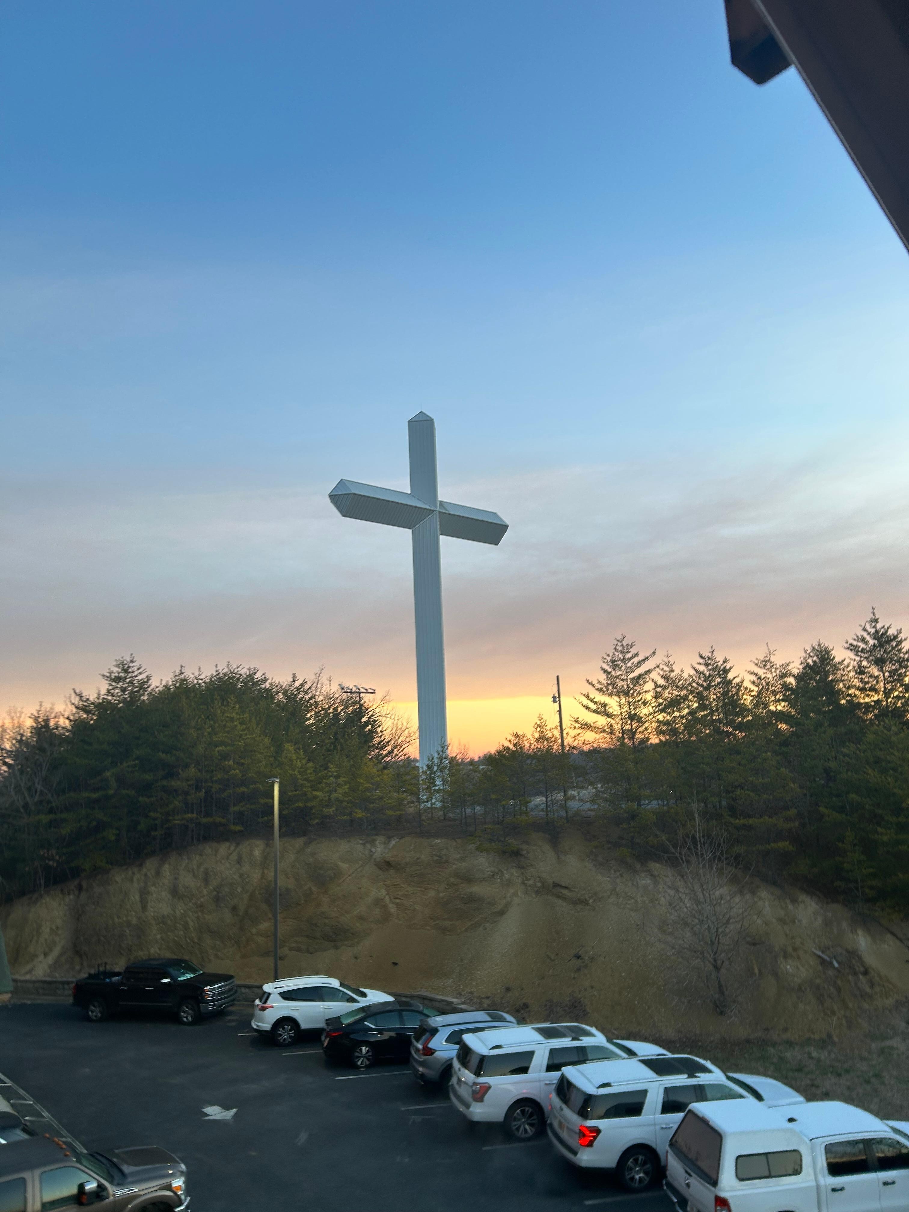 Top of stairs at cross!