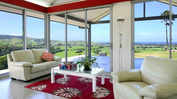 A modern rural retreat with stunning ocean views and mountain vistas. The magic really begins as you drive towards this architecturally designed property and you take in the amazing views that will captivate you throughout your entire stay.