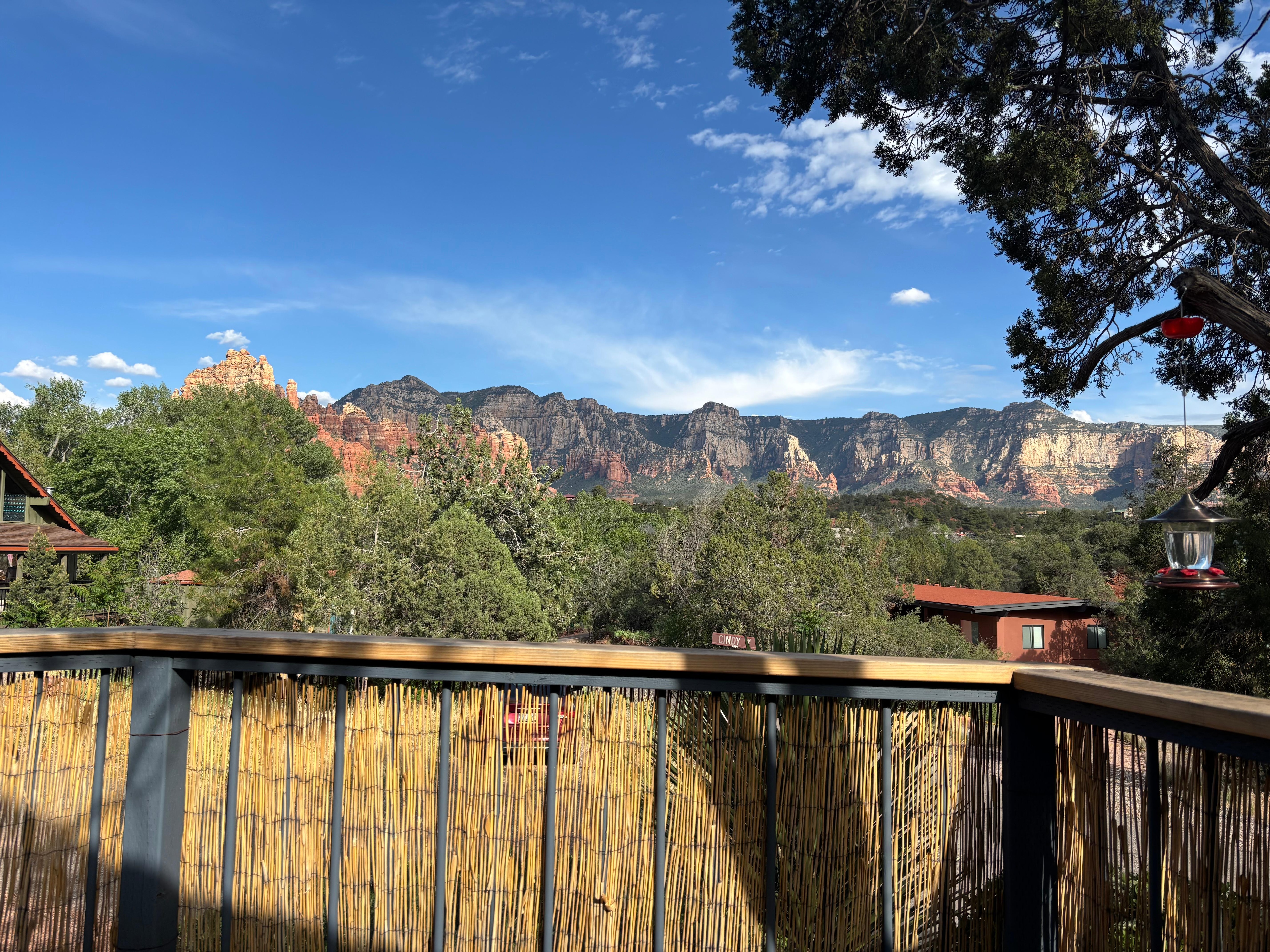 A side porch with sweeping red rock views