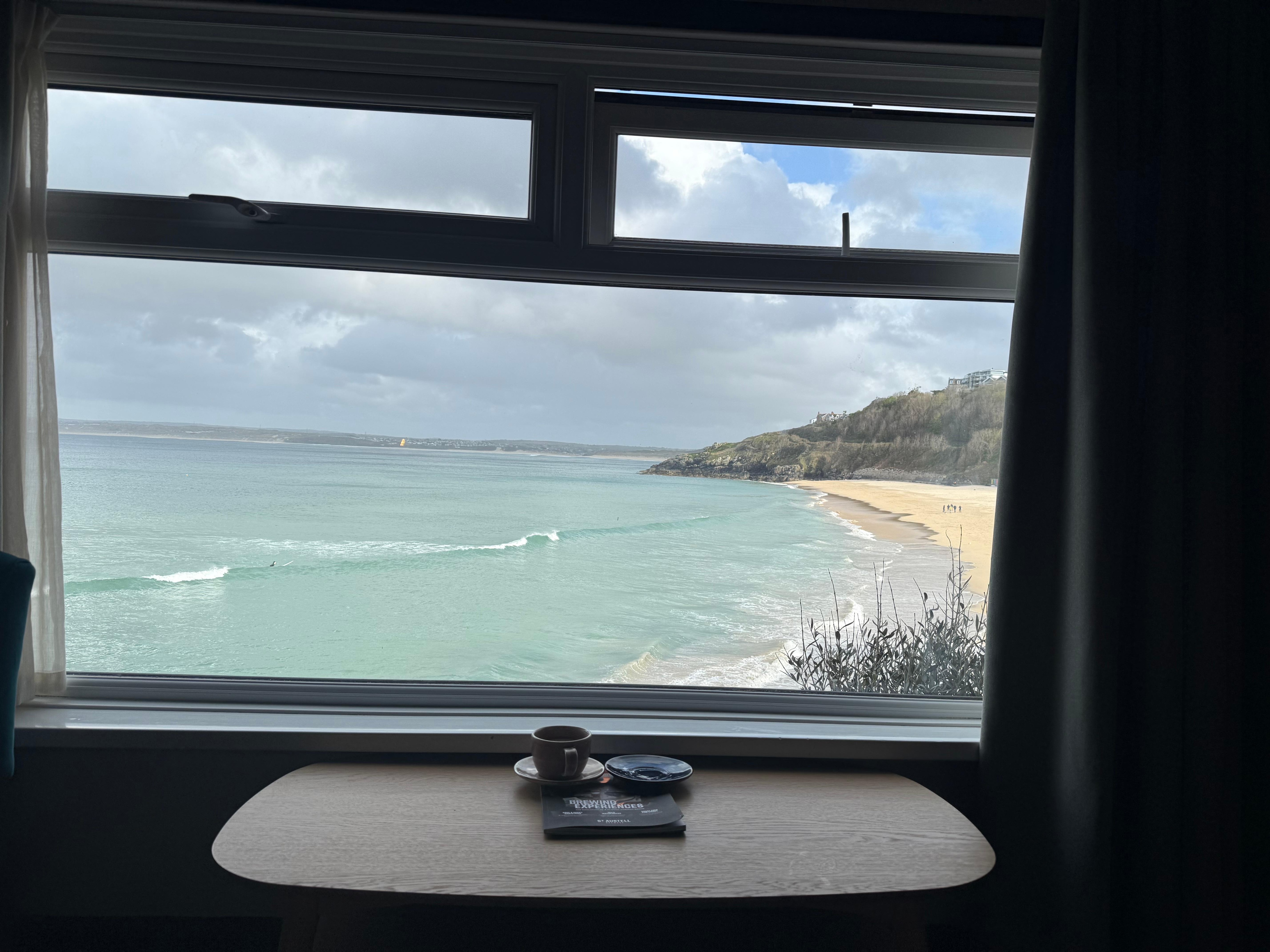 We stayed in a beautiful room with a fabulous view. It didn’t feel like a hotel, more like your own bedroom at home so nice and homely. Following its recent refurbishment on the whole it’s a lovely job. Would we stay again, yes we would. Beautiful views across the harbour and the other direction to Porthminster from the bar and restaurant.