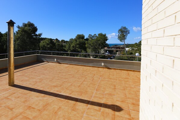 Air conditioning in the living room and some bedrooms, heating with heat pump, washing machine, tumble dryer, bed linen and towels included. Private garage.