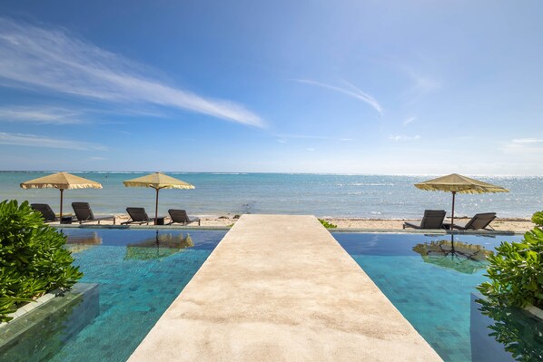 Guests enjoy direct access to a calm, private beachfront, perfect for swimming and relaxing.