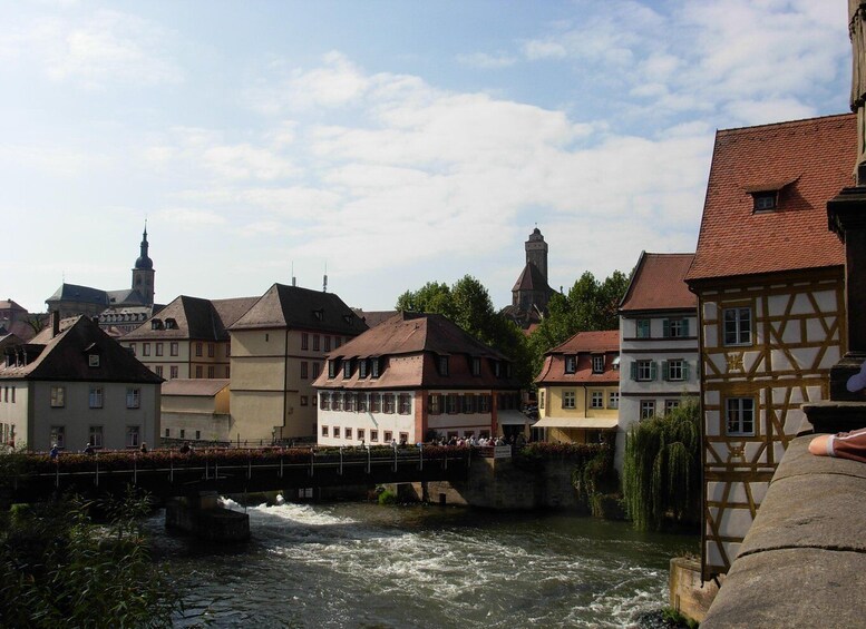 Promenez-vous dans la ville avec votre guide touristique et découvrez le célèbre hôtel de ville. Prenez quelques photos du curieux bâtiment construit sur une île artificielle dans la rivière Regnitz. Apprenez tout sur sa cathédrale médiévale et l’histoire de l’une des plus anciennes communautés juives d’Allemagne.