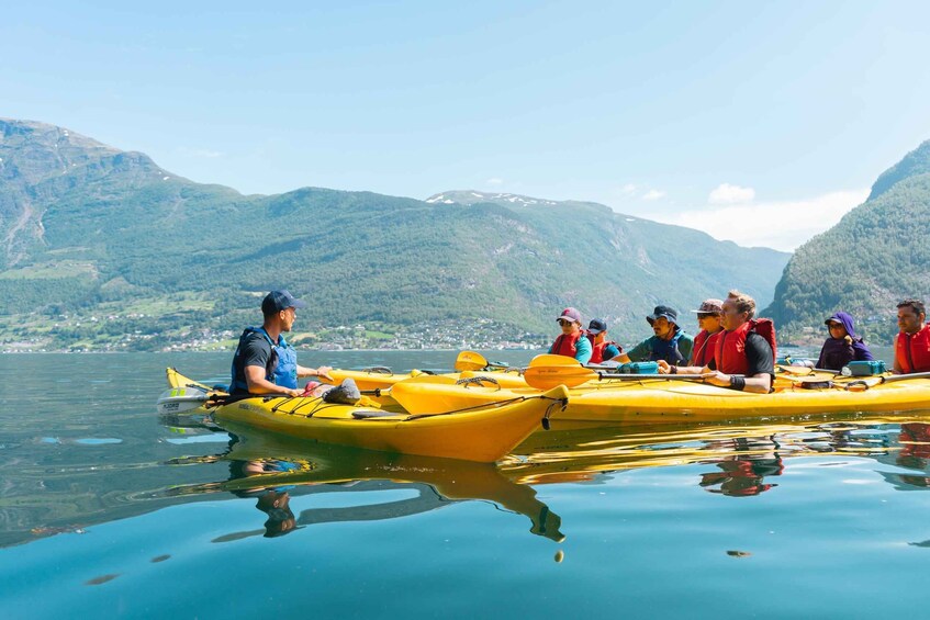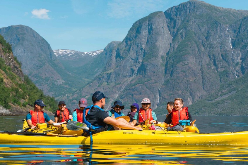 The tour begins in the charming village of Flåm, where you'll meet your guide and fellow kayakers. On the beach in Flåm you'll receive a safety briefing and instruction on kayaking techniques.