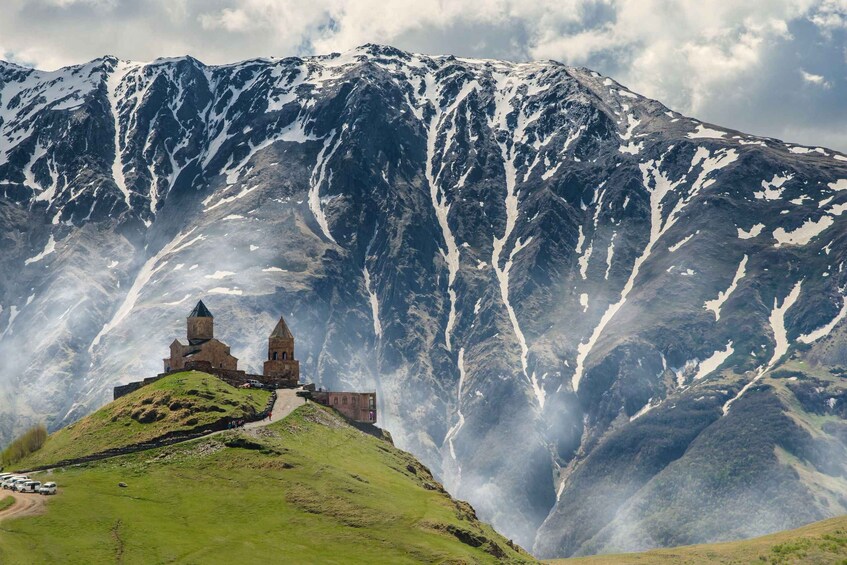 Discover the magic of the mountains on a full-day guided trip from Tbilisi. Visit Zhinvali Reservoir, Ananuri Fort, Gudauri, the Cross Pass, Kazbegi National Park, and the famous Gergeti Trinity Church. Admire panoramic views and old forts, and have the chance to sample the local cuisine.