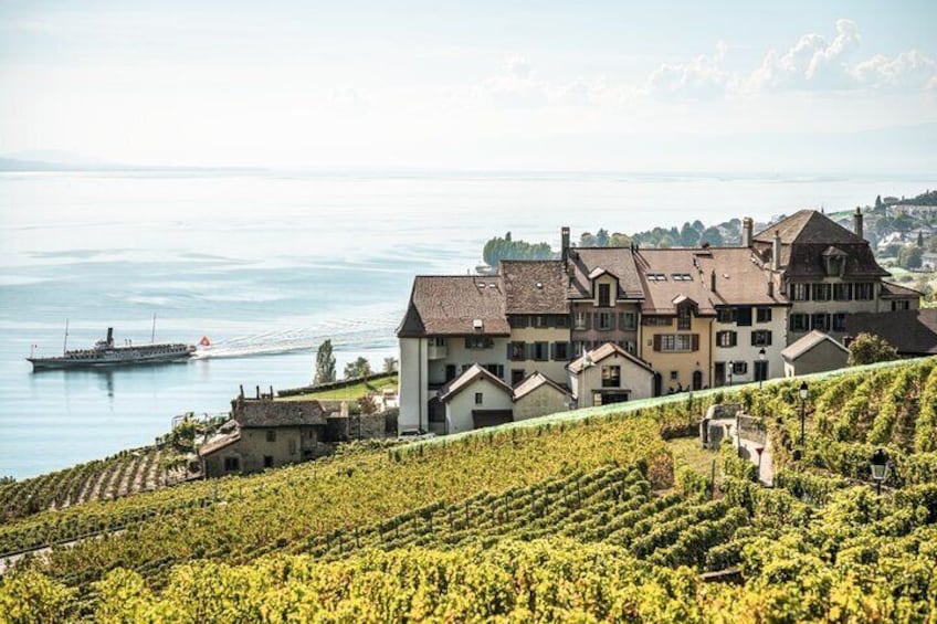 Your journey will conclude in the sensational town of Epesses, situated in the UNESCO World Heritage region of Lavaux. Here, you'll embark on an easy guided climb through the magical vineyards of the Lavaux region. Our guide will unpack interesting facts about the region's historical heritage as you voyage uphill. The short and easy hike will come to a pleasant end as you reach the decadent Clos de la Republique estate, where you'll indulge in a much-deserved wine tasting with the owner. The estate boasts 800 hectares of terraced vineyards, offering stunning views of the surrounding Swiss landscapes that you are free to roam. After you have explored all the region has to offer, you'll enjoy a soothing train journey through the luscious green vineyards.