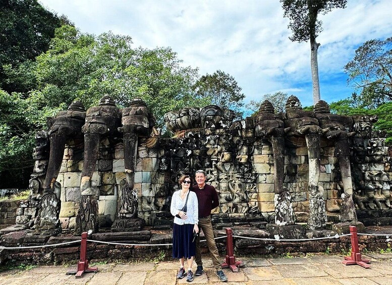 After relaxing, we continue to visit the other the magnificent temples of one of Cambodia's jewels, the impressive Angkor Thom, which was the fortified “Great Royal City” built in the 12th century by King Jayavarman VII. At the South Gate, we can see the imposing statue of Avalokiteshvara, which appears in the Tomb Raider film. Marvel at smile faces temple of Bayon with its 54 towers, in Buddhist style and adorned with hundreds of faces made of stone, and also explore the Terrace of Elephants, former Royal Palace, Phimeanakas, Terrace of Leper King, and Baphoun temple, It is considered the largest Hindu temple in Angkor Thom city. Transfer you back to your hotel by Tuk Tuk.